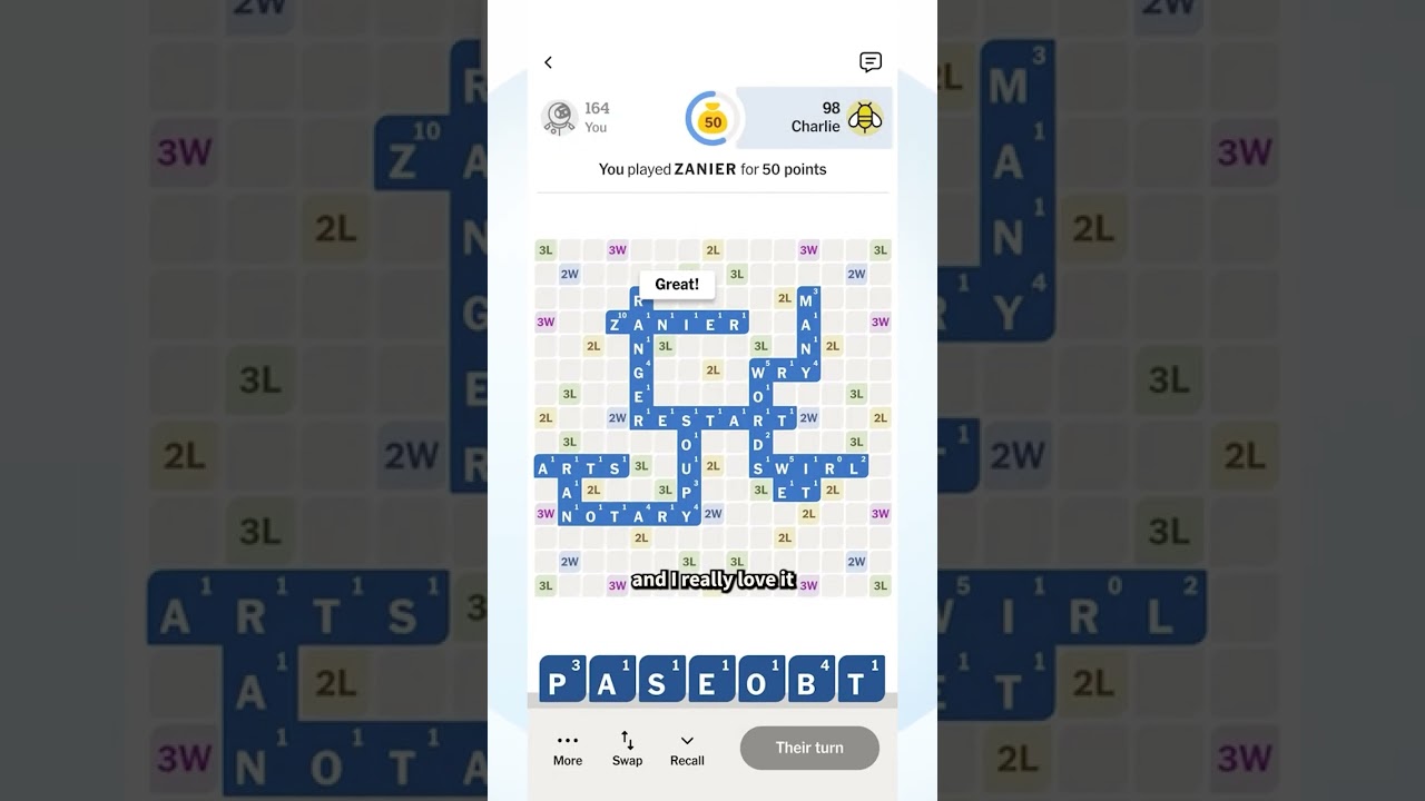 The game features players taking turns building words off one another to earn points. It's another chance for players to show off their puzzle prowess in friendly competition and get their names on the NYT's leaderboard.