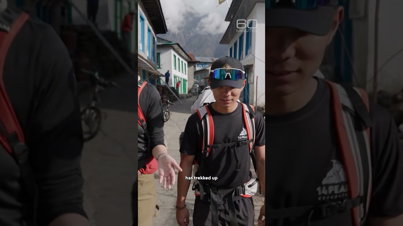Our 60 Minutes crew starts the journey to Everest Base Camp by dodging animals at 9,337 feet. Prayer wheels mark the way. #mounteverest #sherpa #nepal
