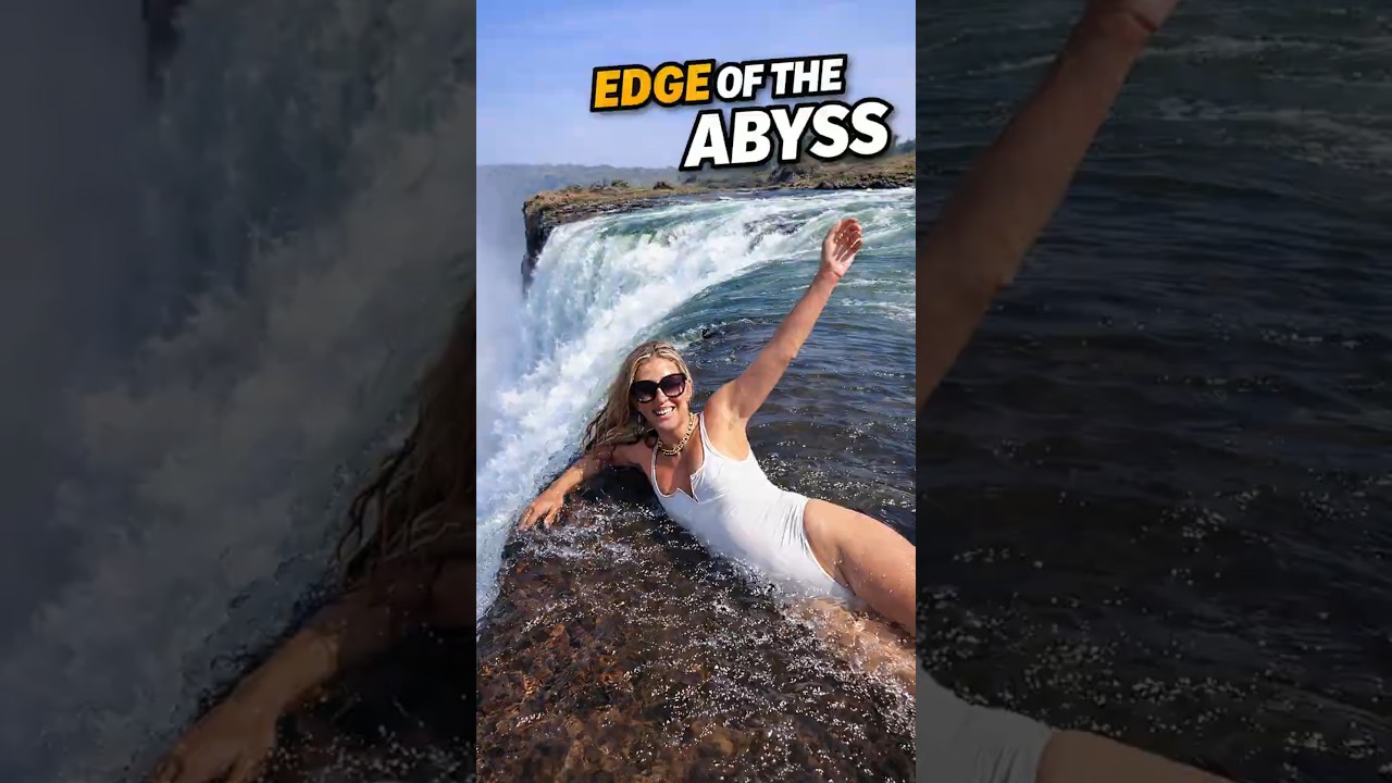 This natural pool formation is called Devils Pools, which is about 10ft-deep and sits right on the edge of the abyss, separated from the raging water flowing over the falls.