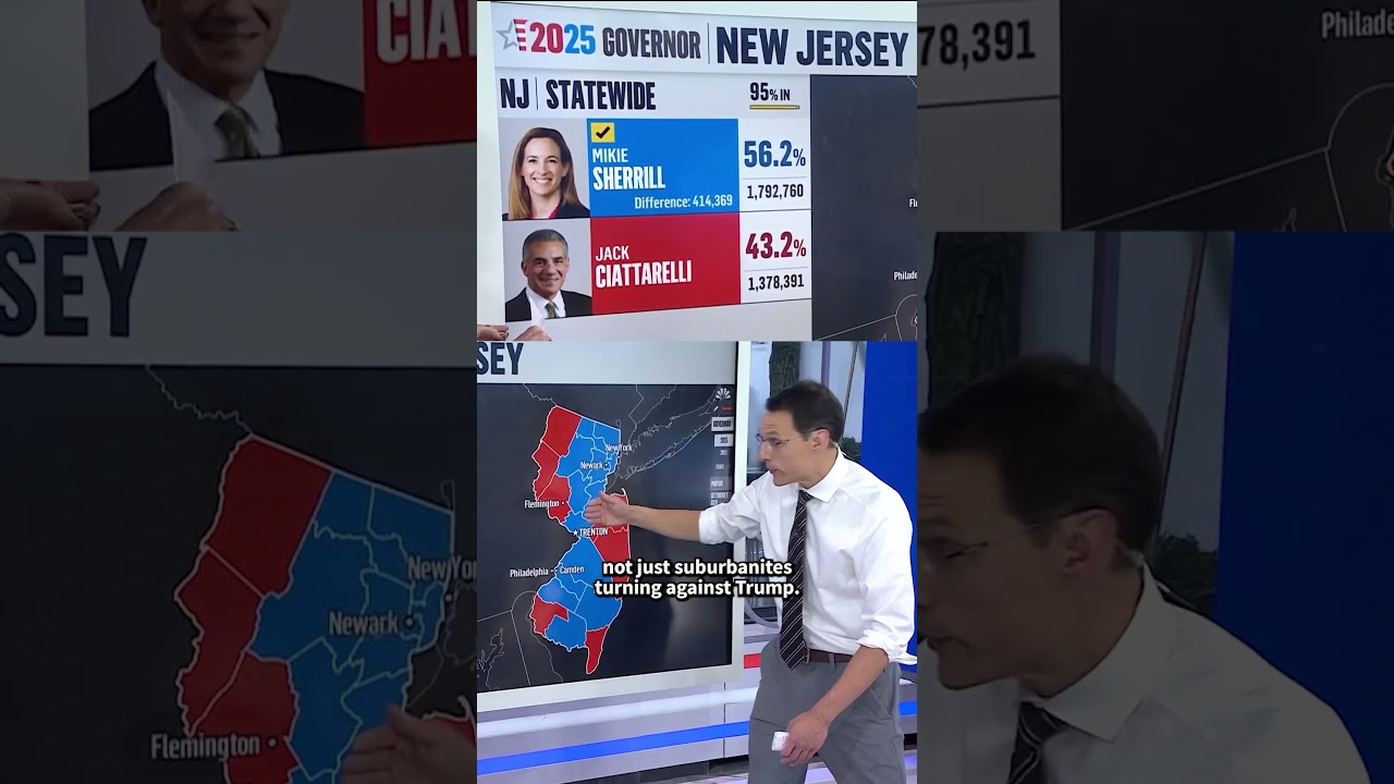 NBC News chief data analyst Steve Kornacki joins TODAY to break down the results from the key races on Election Day 2025. He says Democrat Mikie Sherrill's 13-point win over Republican Jack Ciattarelli in New Jersey's governor's race was the "biggest overperformance" for Democrats of the night.