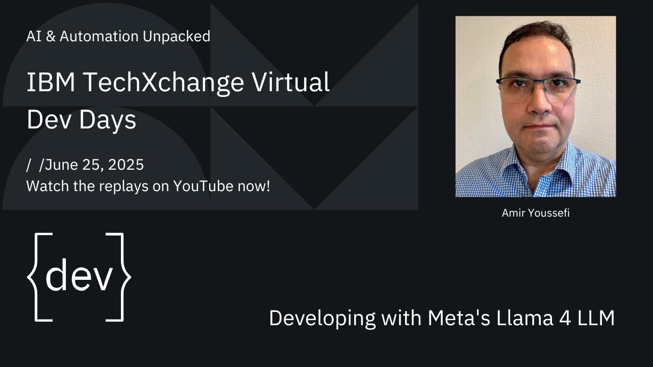 Join us for an introduction to Meta's Llama 4 Large Language Models and how to develop with them on the IBM watsonx platform. We'll walk through sample code to get you started quickly.